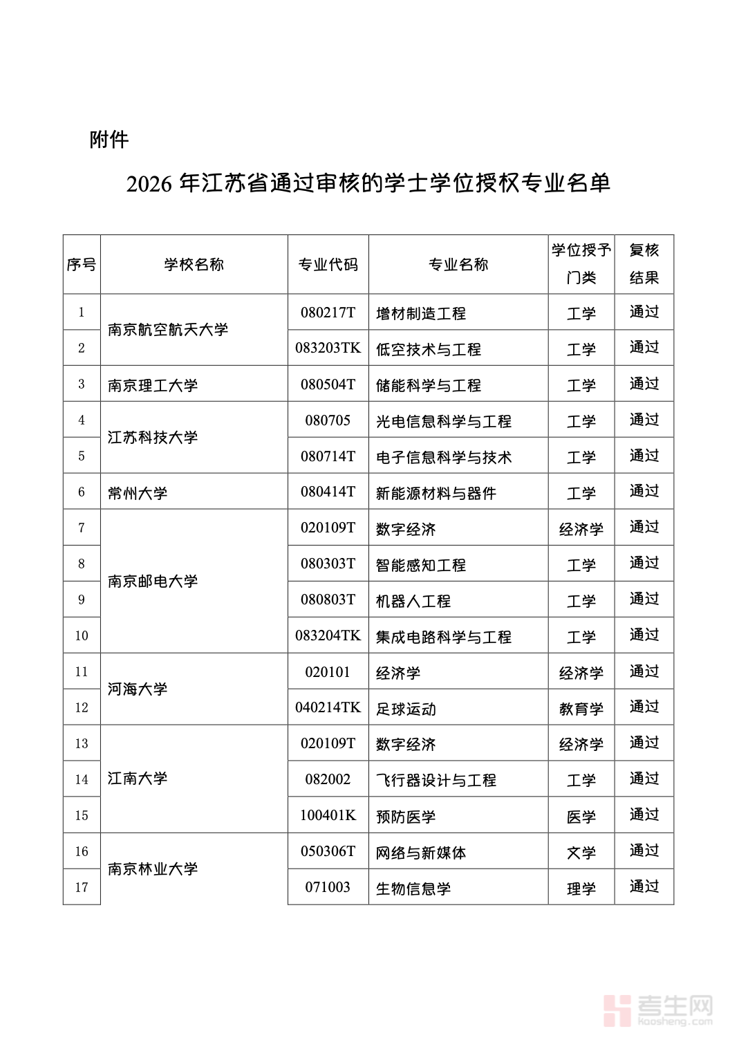 根据《江苏省学士学位授权与授予管理办法》《省学位委员会办公室关于进一步做好学士学位授权审核工作的通知》,现对2026年江苏省通过审核的学士学位授权专业进行公示,公示期为2026年4月8日至4月14日。