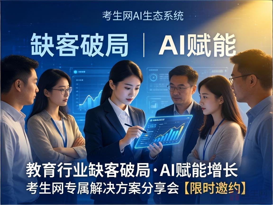 考生网,全网唯一的教育生态平台,携全系列20+AI产品重磅来袭,全方位赋能教育行业从业者转型升级:不做高额投流的“韭菜”,帮您搭建专属SaaS生态,牢牢掌握经营主动权;用AI技术实现快速低成本获客,解锁精准引流新方式;通过智能化运营管理,大幅降低人力、运营成本,实现降本增效;更能助力您打造真正属于自己的私域流量平台,沉淀核心用户,提升品牌公信力,摆脱平台“卡脖子”困境,实现长效稳定盈利!