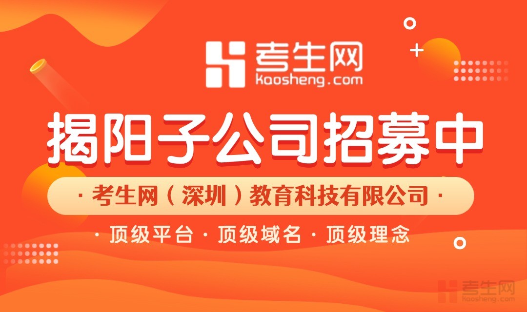 在这样的背景下,考生网——中国领先的全方位考生服务平台,现诚邀五位充满激情和责任感的区域负责人加入揭阳子公司,共同推动揭阳教育市场的发展,共享这份红利!