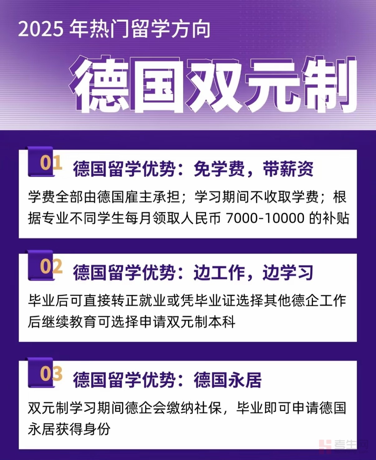 想要以双元制的职业培训移民德国的申请人,第一大前提,就是需要有德语B1以上的语言成绩。双元制的申请人,年龄基本在18~35岁之间,当然,并不是否定了所有年龄较高的申请人,具体的案例还需要具体分析。从企业雇主以往实际录取统计数据来看,技术类双元制最佳年龄段一般为18-35周岁,护理双元制最佳年龄段一般为18-45周岁。除此之外,你需要做自我审视:能否平衡工作与学习之间的关系。双元制职业教育的模式为学校(30%)+企业(70%),一周的时间里,可能有两天上课,三天上班,你不仅面临的有学业,还有工作压力。因此,如果你是自律、学习能力强、抗压能力强的人,那你不妨来尝试申请德国双元制。德国双元制是“非学历教育”,不是正常的留学升学渠道。