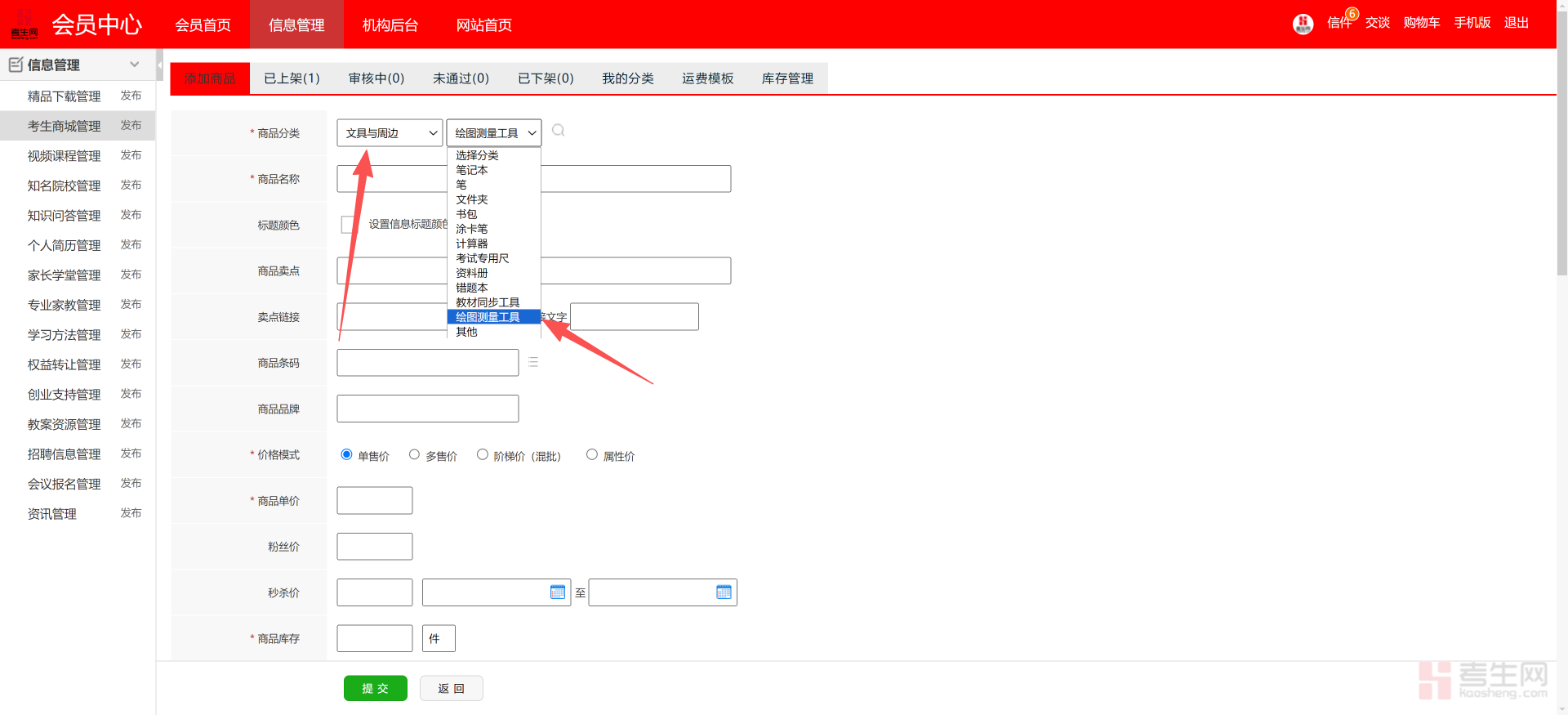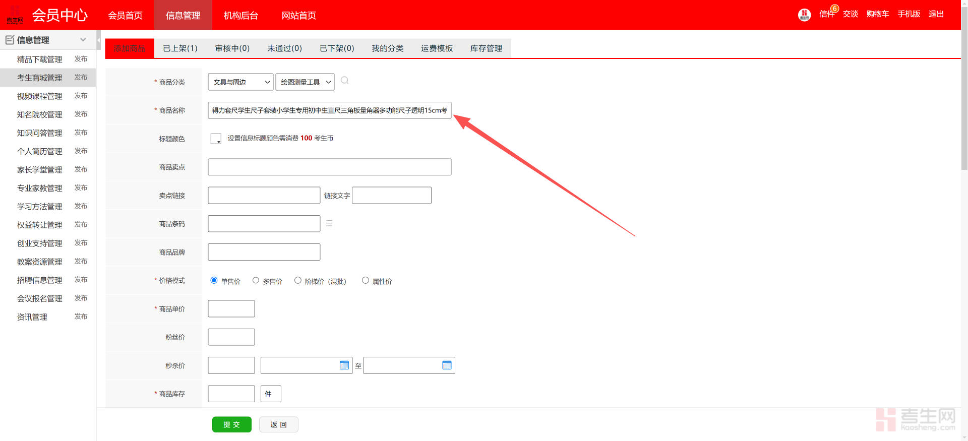 考生网商品上架步骤